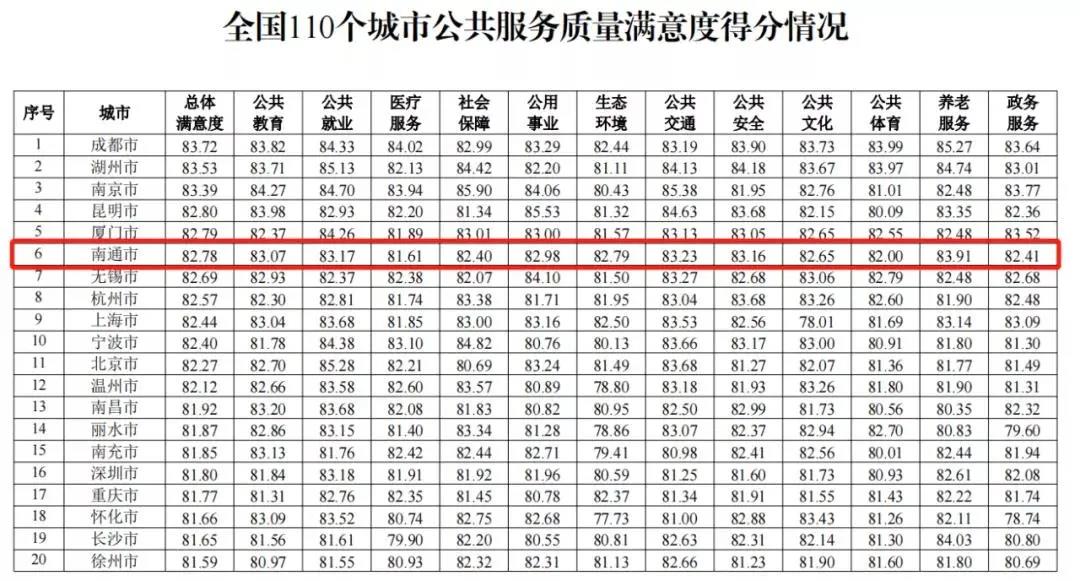 在全国110个监测城市中,南通以82.78分位居全国第六,高出全国总体满意度3.78分,12个领域测评满意度均高于全国平均水平。近日,国家市场监管总局通报了2020年全国公共服务质量监测情况,南通在这次公共服务综合大检阅中交出了一份亮眼答卷。