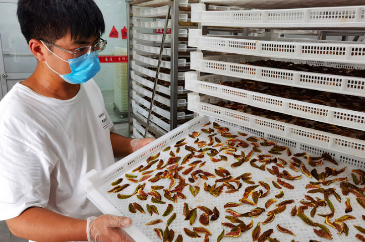 果子品种达标了,怎么才能烘干出品质好的果干?“第一年做果干的时候,国内只有一家企业生产这种大型烘干设备,机器各方面并不完善,有些实验室环境下的理论数据,在实践操作中无法达到。”那时候,不少客户都忙着和厂商打官司,康海建却联系上了企业的设备研发工程师,不断与工程师沟通,了解机器的内部构造和工作原理,研究改进方案。连续20多天,康海建搬个凳子整天坐在机器旁边,自己动手拆了装、装了拆,每天只睡两、三个小时,终于解决了机器排湿和冷凝器处理不及时的问题,烘干出品相俱佳的果干。