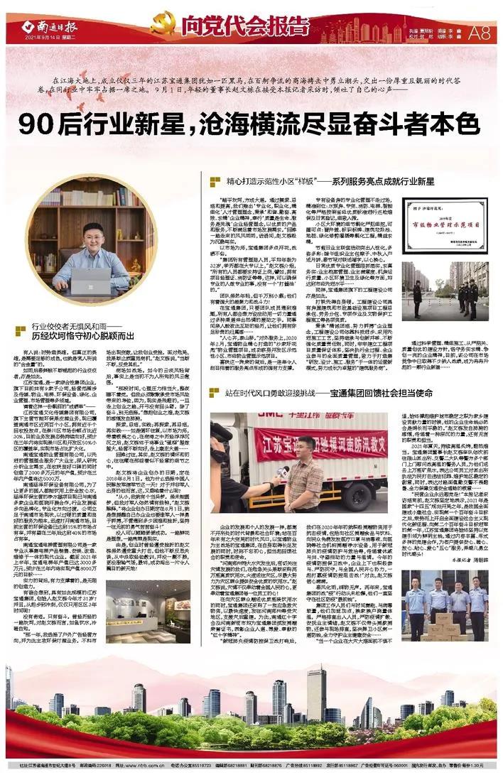 南通宝通物业管理有限公司,以先进的管理理念服务广大业主,深入研究分析业主需求,在收获良好口碑的同时创造了2000多万元的年产值,预计在三年内产值将达5000万。