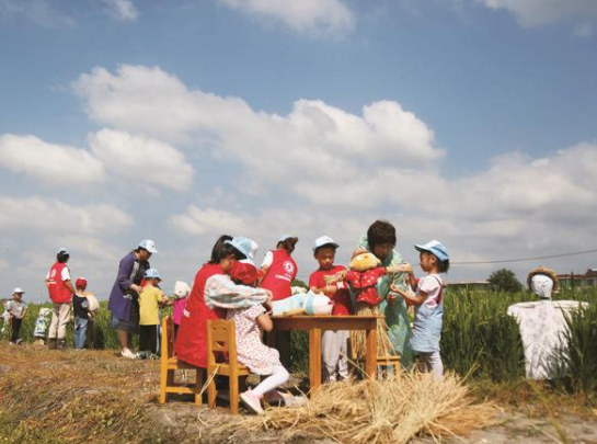 18日,在“中国农民丰收节”来临之际,海安墩头镇双溪幼儿园在户外稻田开展“创意稻草人 守护丰收果实”主题活动。活动增强了孩子们爱护环境、节约资源的意识,教育他们从我做起,争当环保小卫士。 周强摄