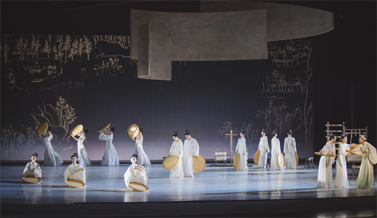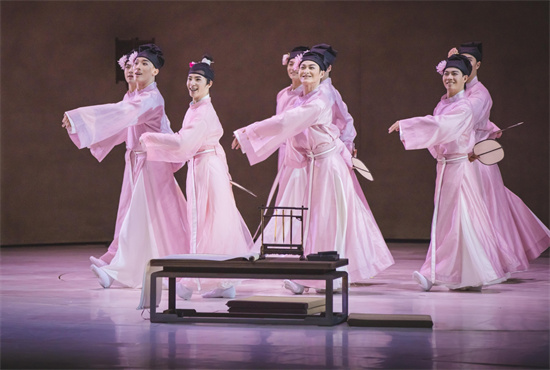 《只此青绿》是以收藏于故宫博物院的北宋青绿山水代表画作《千里江山图》为背景创作,采用时空交错式的叙事结构进行呈现。现场观众们跟随展卷人的步伐,看到浣纱织绢时的素净优雅、画院求学时的活泼俏皮、采石制砚时的铿锵有力……观众们以沉浸式“赏画”的体验,与剧中主角一同度过了呕心沥血绘制《千里江山图》的宝贵时光。演出结束后,不少观众表示,不仅看到《千里江山图》“活”了,而且还被剧中的美,尤其是宋代美学彻底征服了,也借此看到中华民族的文化自信。