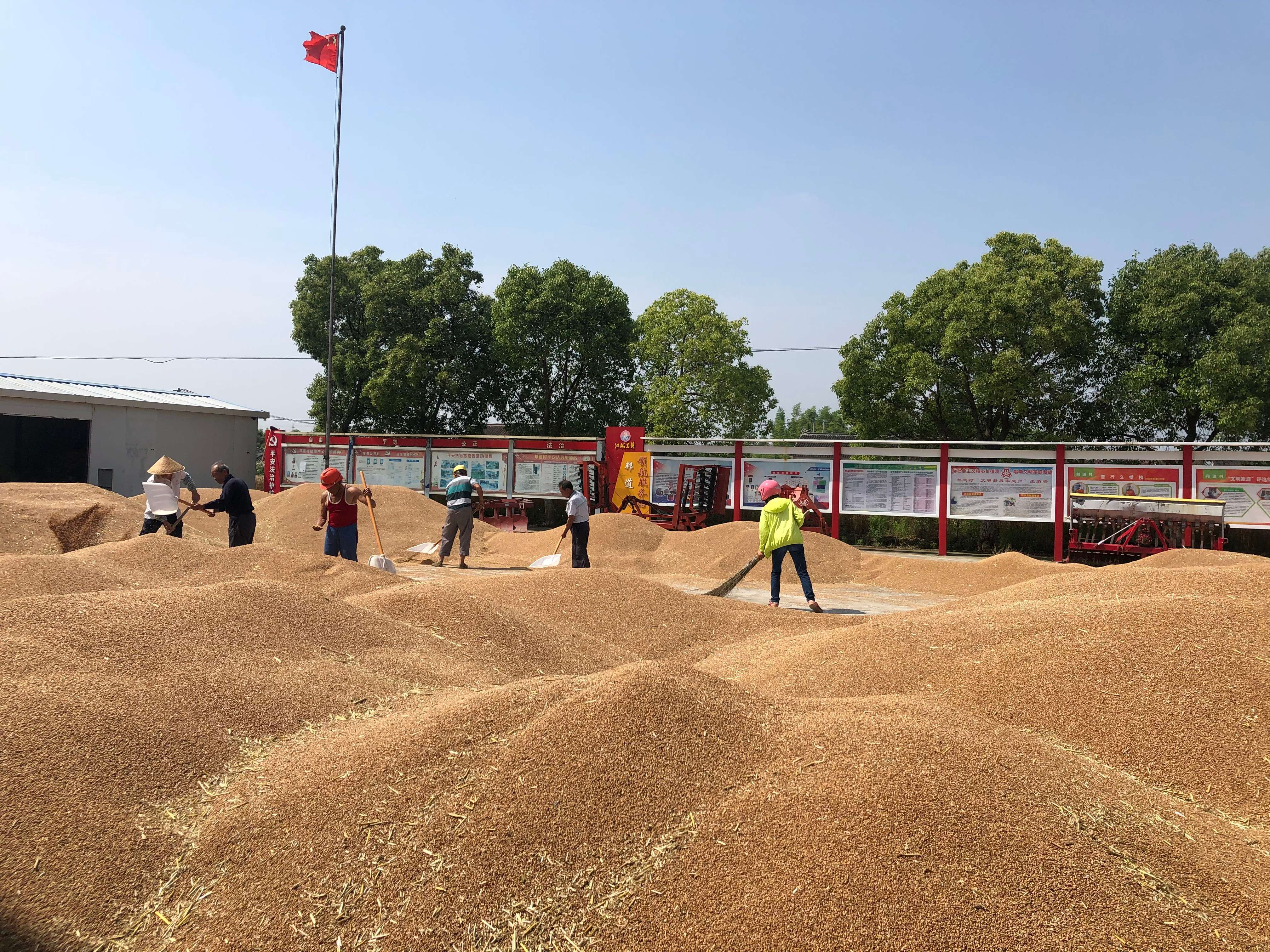 近日,在江苏省启东北新镇邦道村,稻浪滚滚,成片的水稻已经进入扬花期,长势喜人。邦道村党总支书记倪晓红正在带领村民清除杂草,她告诉记者:“今年村里852亩水稻丰收在望,453个入股农户和村干部一样家家开心,这都是村里成立农地股份合作社带来的喜人变化。”