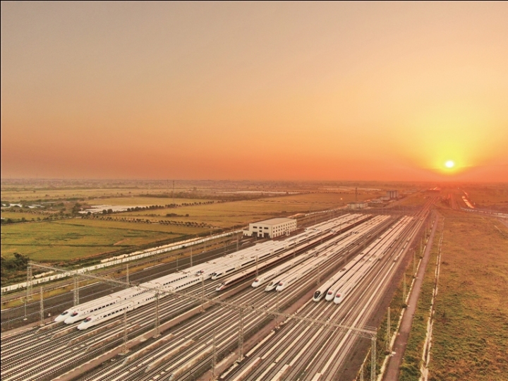 昨天是中秋佳节,南通动车运用所存车线上排列的动车组在朝阳下呈现别样景致。据介绍,中秋小长假前两天,南通动车运用所检修数量、过夜存放数量等均有所增长。仅20日晚就检修动车15组,夜间停放的6种不同型号动车由平时的30多组增至47组。 记者 许丛军摄