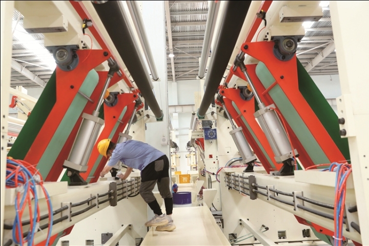 9月16日拍摄的江苏省重特大产业项目——金光如东产业基地项目1号线生产车间。 金光如东产业基地项目由印尼金光集团在洋口港投资建设,项目计划总投资450亿元。