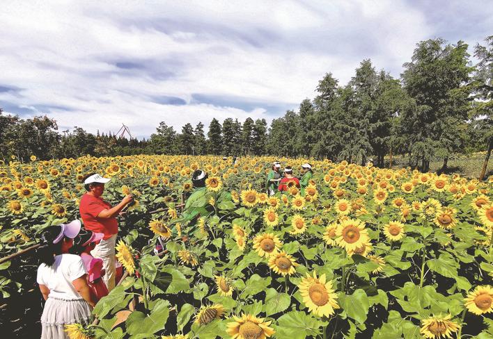 昨天上午,市民在狼山国家森林公园之“军山绿野”向日葵花海游玩。向日葵在秋阳下竞相绽放,黄花绿叶交相辉映,吸引众多市民前来观赏,享受周末假日休闲时光。军山绿野位于狼山国家森林公园最南端,这里以“保护、生态、原乡”为主要设计原则,打造出一个集森林保育、生态修复为一体, 兼具四季景观特色和农耕田园风光的森林公园。 李斌