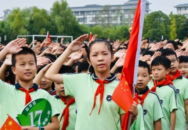 本网讯 (记者卢兆欣)童心向党,礼赞祖国。国庆前夕,我市各地各中小学校广泛开展“向国旗敬礼”主题活动,利用升旗仪式、国旗下讲话、红领巾广播、班会等多种形式,热烈庆祝中华人民共和国成立72周年,教育引导未成年人扣好人生第一粒扣子,争做担当民族复兴大任的时代新人。