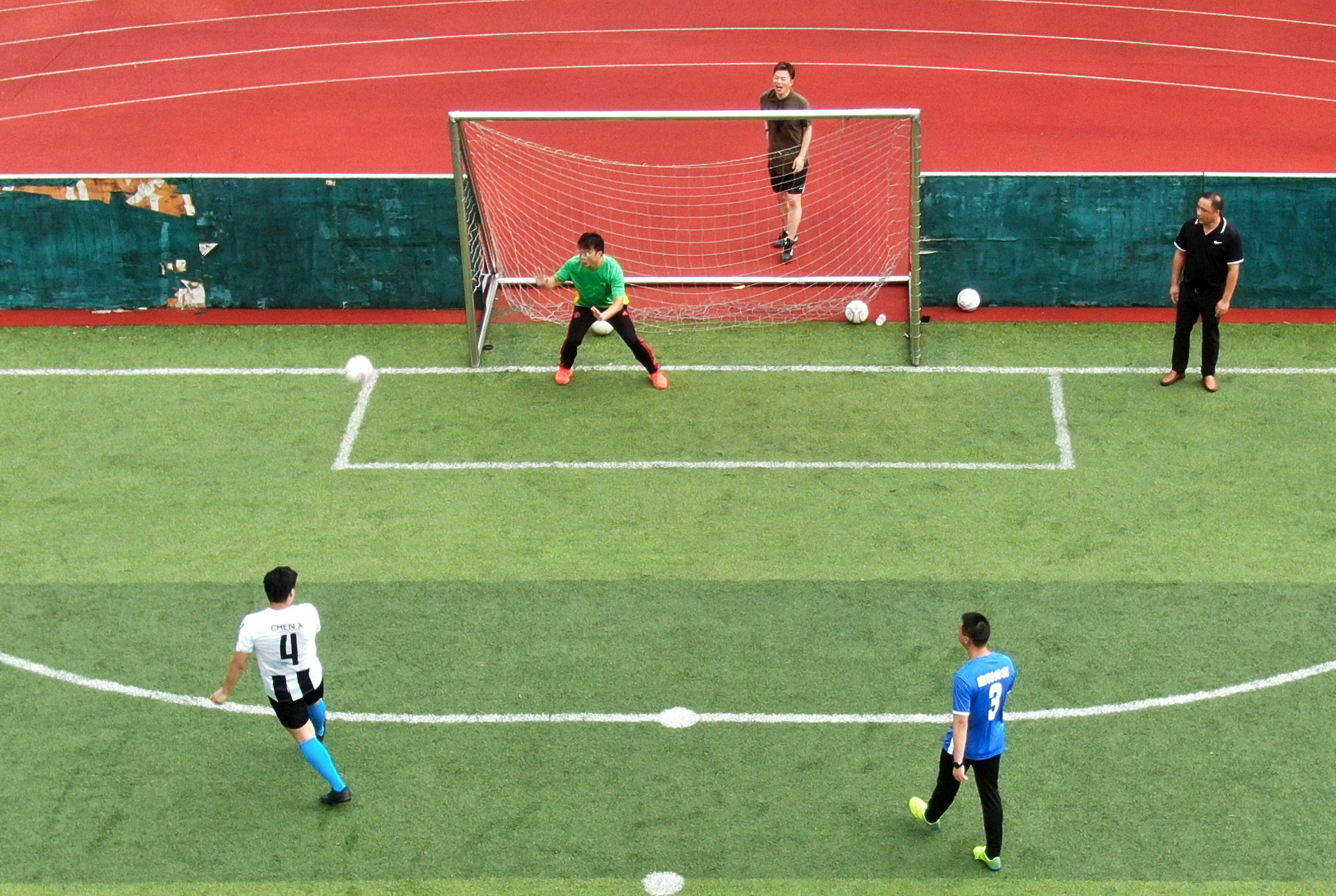 陈山勇参加七残会盲足比赛射门场景。(资料照片)