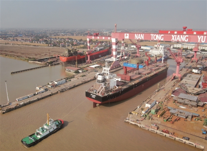 3日,南通象屿海洋装备有限责任公司63500DWT(载重吨)散货船和3600吨全回转起重船顺利出坞。