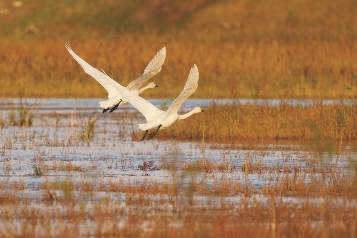 早在2017年,如东高新区摄影协会摄影爱好者们第一次拍摄到22只过境如东刘埠湿地的野生白天鹅。近几年冬季来临时,这些过境野生白天鹅都会在如东境内逗留嬉戏,这里俨然成为“第二故乡”。事实上,不仅是白天鹅,还有勺嘴鹬、黑嘴鸥、黑脸琵鹭等300多种珍稀野生鸟类都曾在如东广袤的湿地上亮相登场,引得无数鸟类爱好者前来观赏。