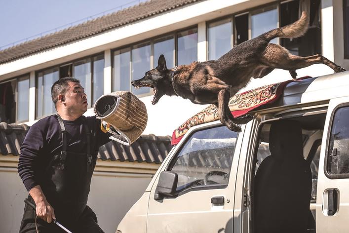不过,当凌永平一声令下,“一宝”瞬间有了警犬模样。站、立、坐、卧、跳,一个个指令下达,“一宝”做得干脆利索、标准到位,果然是训练有素。