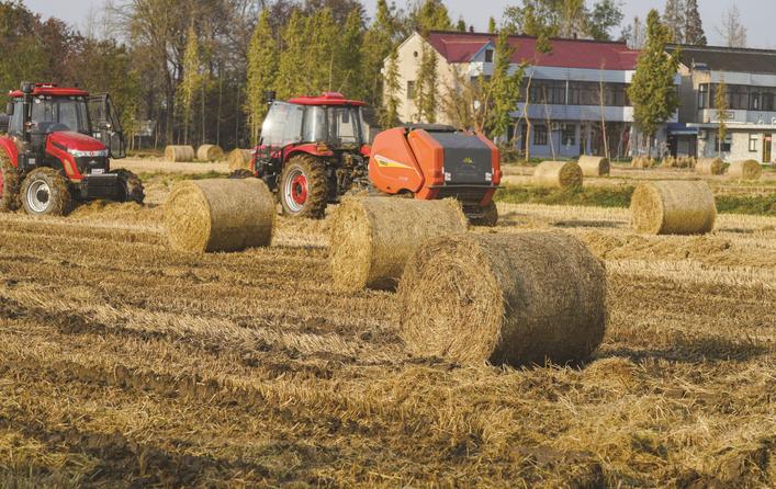 九华镇马桥村是如皋市确定的9个中央农作物秸秆综合利用重点村之一,该村经济股份合作社投资180万元建起秸秆收储中心,与光大生物能源 (如皋)有限公司合作,每年收购不少于1500吨农作物秸秆直燃发电。秸秆变废为宝,不仅解决污染隐患,还能增加农户收益。今年上半年,马桥村秸秆收储中心收购“三麦”秸秆880多吨,下半年秋收尚未完全结束,收购秸秆已逾700吨,远超去年秋收打包收购的水平。图为13日拍摄的秸秆打包现场。 赵国庆 邱永华摄