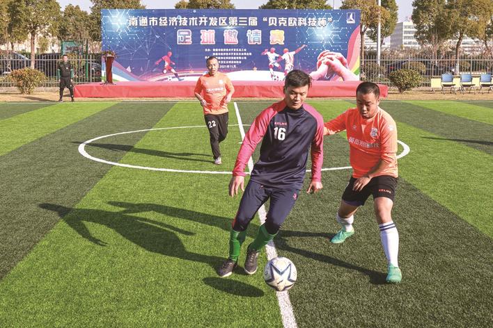 昨天上午,由南通经济技术开发区总工会、区群团工作部、区社会事业局主办,区足球运动协会、贝克欧净化科技南通有限公司承办的第三届“贝克欧科技杯”足球邀请赛举行。200多名员工在绿茵场上大展身手,享受足球运动带来的欢乐。 通讯员钱咸华