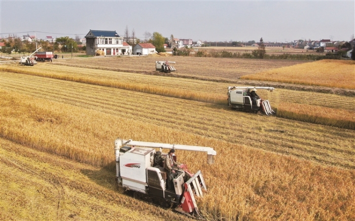 昨日,收割机在通州区石港镇北渡村粮食种植农地专业合作社收割、卸运水稻,合作社种植的300多亩水稻喜获丰收。该村依托“党支部+新型合作农场+集体经营”模式,全程机械化、规模化种植,不仅提高了粮食产量,还促进了农民增收,壮大了集体经济。 记者 许丛军摄