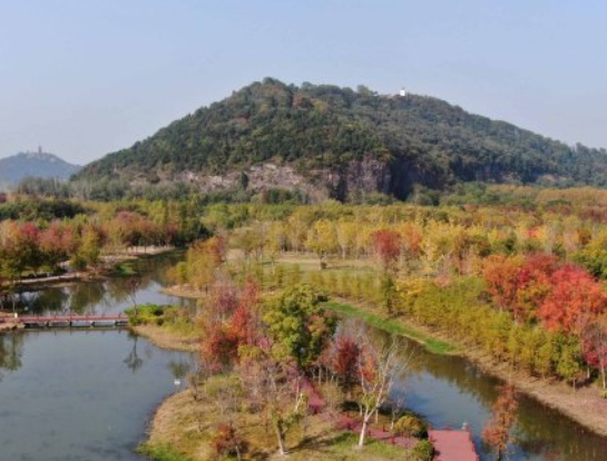 19日上午,无人机航拍狼山国家森林公园美景。初冬时节,狼山国家森林公园迎来多彩季,种类繁多的树木,随着气温的变化次第变色,红、黄、绿色的植物相互交织,呈现出油画般的层次。