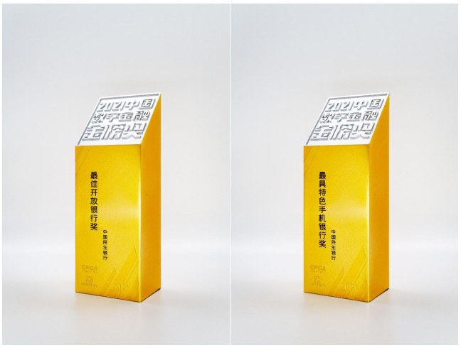 11月25日,中国金融认证中心(CFCA)联合近百家银行在北京举办了2021银行数字动能与金融创新峰会暨第17届宣传年年度盛典,揭晓了2021中国数字金融金榜奖获奖机构,民生银行凭借创新型的开放银行模式、智能化的移动金融服务,获“最佳开放银行奖”“最具特色移动金融服务奖”两项大奖。