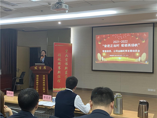 11月21日下午,邮储银行启东市支行开展2021-2022年“奋进正当时,砥砺再扬帆”零售、小企业及公司金融旺季发展动员会暨首届业务技能大赛。