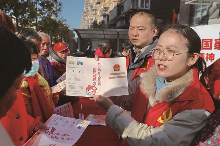 12月1日,崇川区幸福街道秦西社区、花桥社区联合南通火车站派出所开展“弘扬宪法精神 珍惜选民权利”主题活动。组织律师走进社区对居民进行宪法学习普及,普法志愿者向居民讲解宪法相关知识。 吕雷雷文 许丛军摄