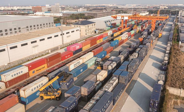 昨天,南通港通海港区集装箱码头和海安铁路物流基地一派繁忙景象。今年前11个月,南通港集装箱吞吐量同比增长6.1%;截至目前,海安铁路物流基地共完成货物到发量130.8万吨,再创历史新高。 记者 许丛军 通讯员 翟慧勇摄