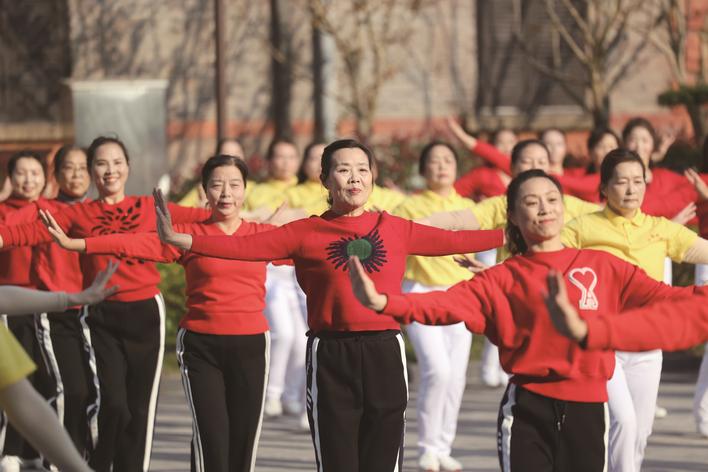 昨日下午,百余名舞者齐集南通群英馆广场,以热情昂扬的姿态,呈现了一场冬奥主题广场舞《一起向未来》,激发全民参与、共享冬奥的热情。 杨镇潇文 徐培钦摄