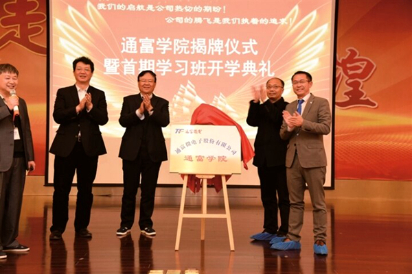 与此同时,企业建立了一套完备的职业培训体系,为不同层次的员工提供全面的学习机会。通过与东南大学、中国人民大学、上海交通大学、南通大学等高校合作,开展员工学历、技能提升教育,累计培养数千人次。2019年下半年,企业从组织框架、课程规划、班级组织等工作开始着手,通富学院应运而生。揭牌仪式上,通富微电董事长石明达作为通富学院名誉院长提到,通富学院的成立,开启了通富人才培养走向体系化、专业化的道路,在公司人才培养方面具有里程碑意义。