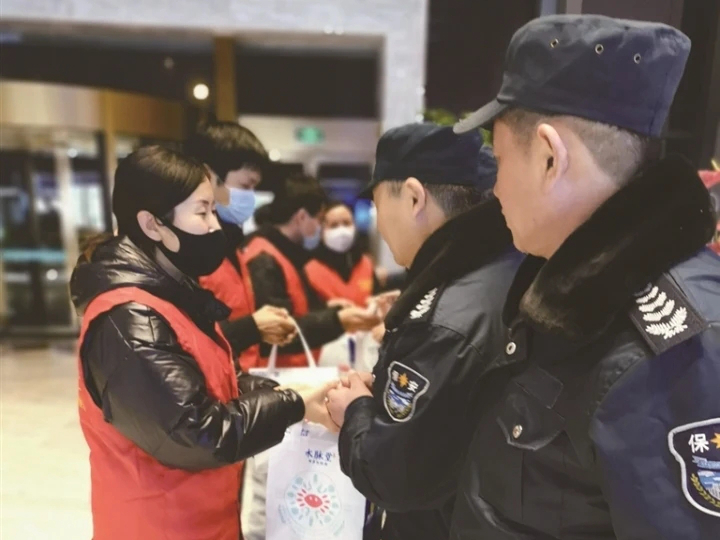 在腊八节当天,为交巡警、消防、高铁和火车站、环卫工等一线工作人员送上一份“爱心礼包”,水脉堂将“一碗粥”的凡人善举坚持了7年。水脉堂负责人沙萧萧说:“这小小的一份粥,代表着我们对广大劳动者小小的一份爱!这份爱,会永远传递下去!”图为昨晚,水脉堂员工来到报业传媒集团给夜班员工送粥。记者周朝晖 冯方缘 孙侃