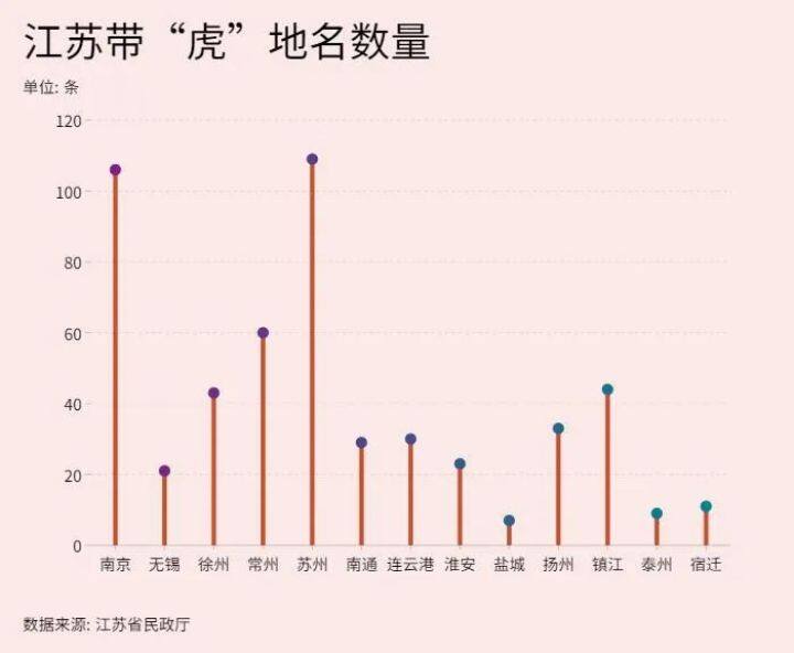 根据江苏省民政厅数据江苏正在使用中的地名有525条包含“虎”字。