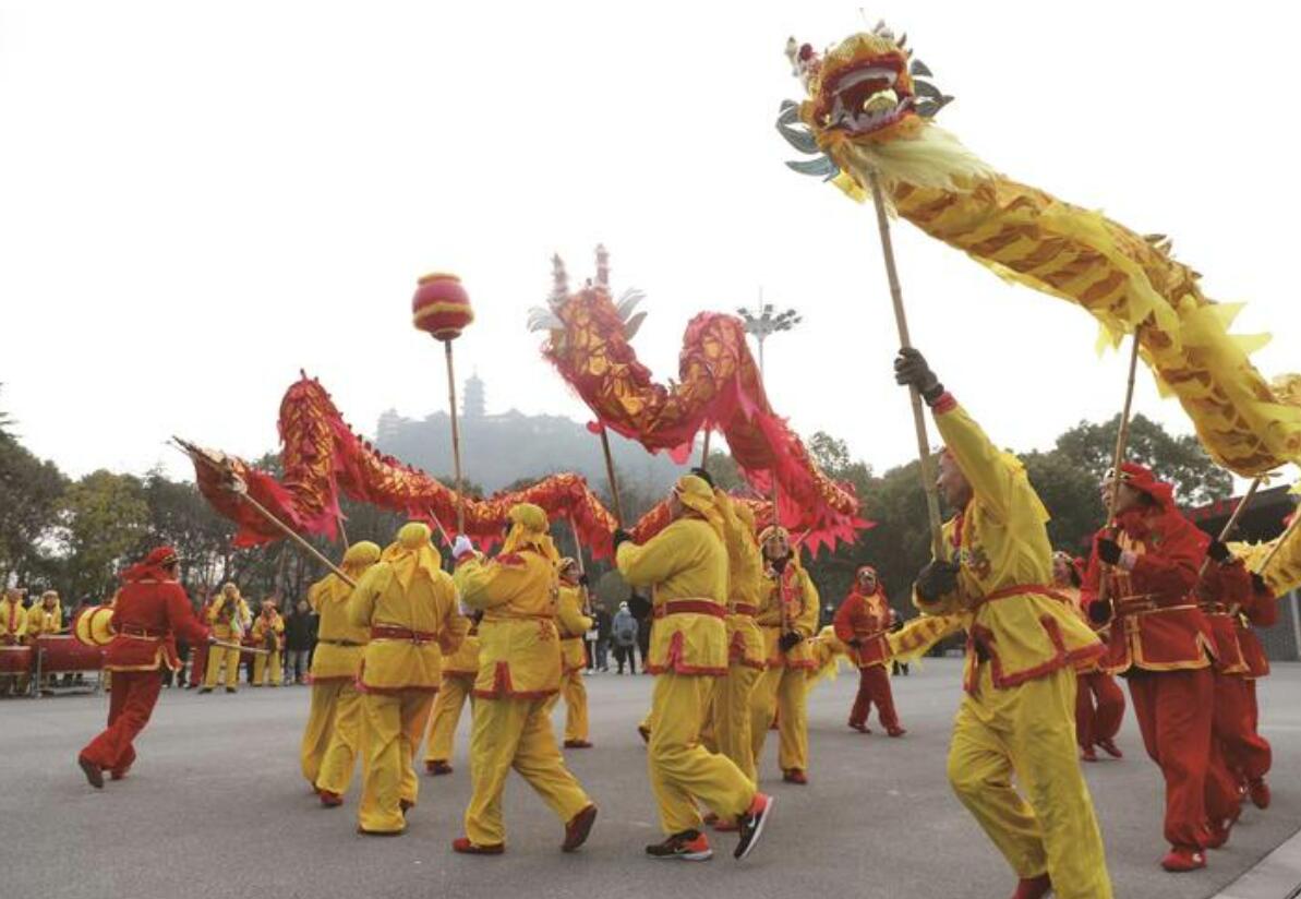 高平游、低平游、八字舞龙……1日上午9点许,刚劲激昂的锣鼓声响起,崇川区狼山镇街道城山社区喜洋洋舞龙队为游客们上演了精彩纷呈的舞龙表演:一条金色巨龙和一条黄色巨龙上下舞动、盘旋起伏……当日是虎年农历新年第一天,狼山景区迎来预约入园的游客。