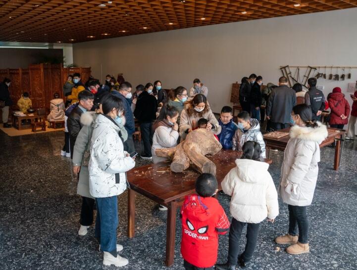 虎年新春,由江苏省南通市文联、南通市美术馆主办的“精细木作特展”成为众多南通市民的新春“打卡地”。传统木工工具展区、榫卯结构体验区、雕刻体验区、雕刻作品展示区等6个版块琳琅满目,引得市民纷纷驻足、竞相参与。