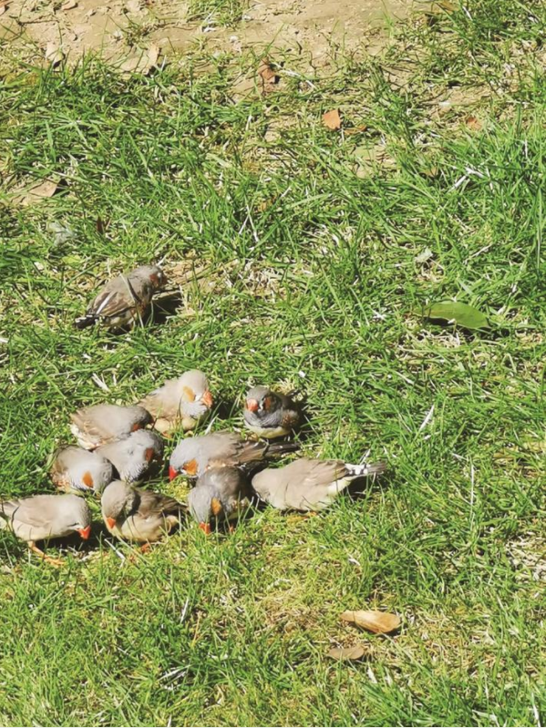 记者在现场采访时,注意到仍有一些流浪猫栖身在树丛和草地中,伺机捕捉剩余的斑胸草雀。这种红嘴红爪、白腹灰羽的热带小鸟在绿化带内蹿上蹿下,飞得不远但很是敏捷,不时落到地上觅食人们投喂的小米等食料。