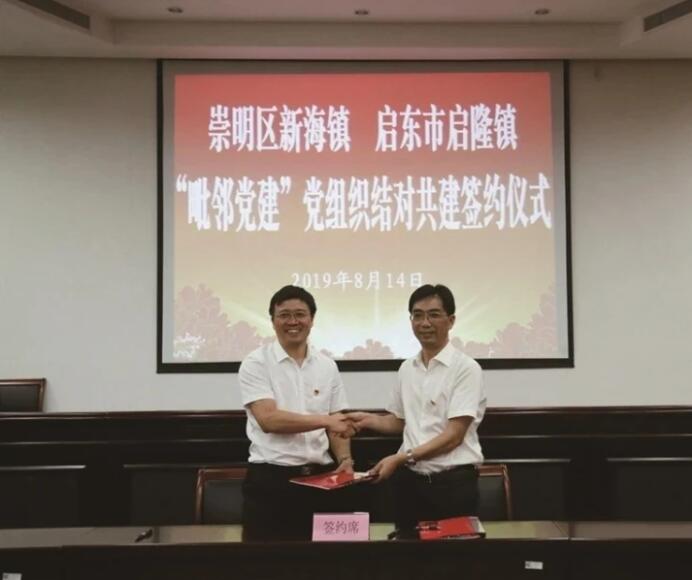 2020年5月,上海市崇明区、启东市、海门区三地签约打造“毗邻党建”联盟,在南通市和崇明区签订的战略合作协议总体框架下,进一步打破行政体制壁垒,丰富和延伸区域化党建工作内涵。