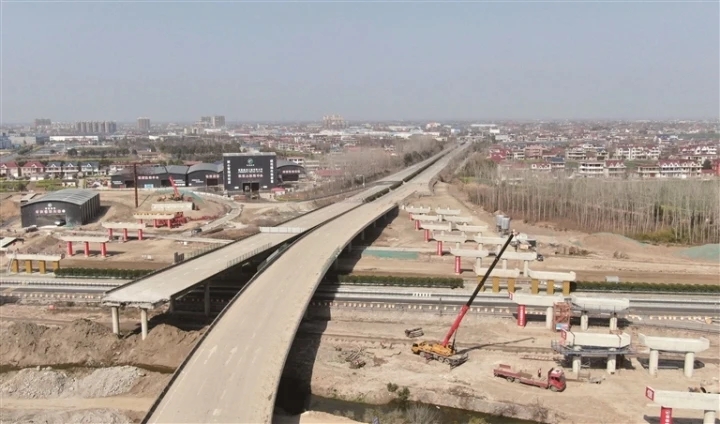9日拍摄的沪陕高速平潮至广陵段扩建工程施工场景。该工程由平潮北枢纽起至如皋市九华镇,全长6.86公里,全线采用双向八车道高速公路标准扩建,设计速度120km/h,路基宽度42米。该项目于去年11月完成半幅封闭,半幅借道单向通行的交通导改,全面开展沪陕高速平潮至广陵段的拼宽施工。截至目前,工程进展顺利,已完成40%。记者 尤炼摄