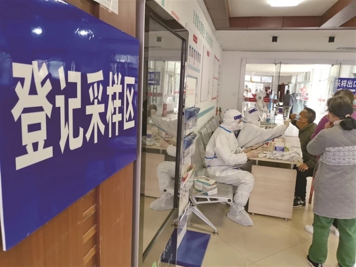 昨天,市民在崇川区一处核酸检测点有序进行核酸检测。当前疫情防控形势复杂严峻,为全力守护人民群众生命安全和身体健康,崇川区新冠肺炎疫情联防联控指挥部决定在全区范围内开展全员核酸检测。 记者 许丛军摄