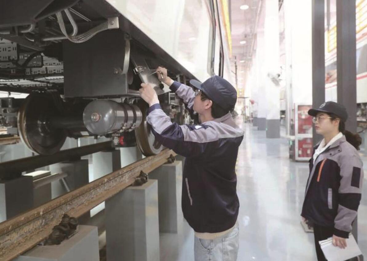 走进轨道公司运营分公司平东车辆段运用库,一列列崭新的电客车整齐排列在眼前。在车内、车底有一群充满朝气的工作人员,他们像是一名名医生、护士正认真仔细地给“电客车”做体检。