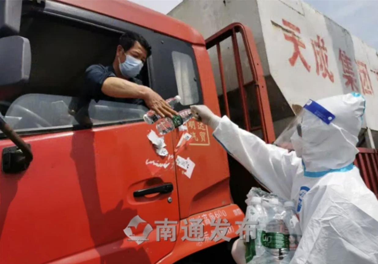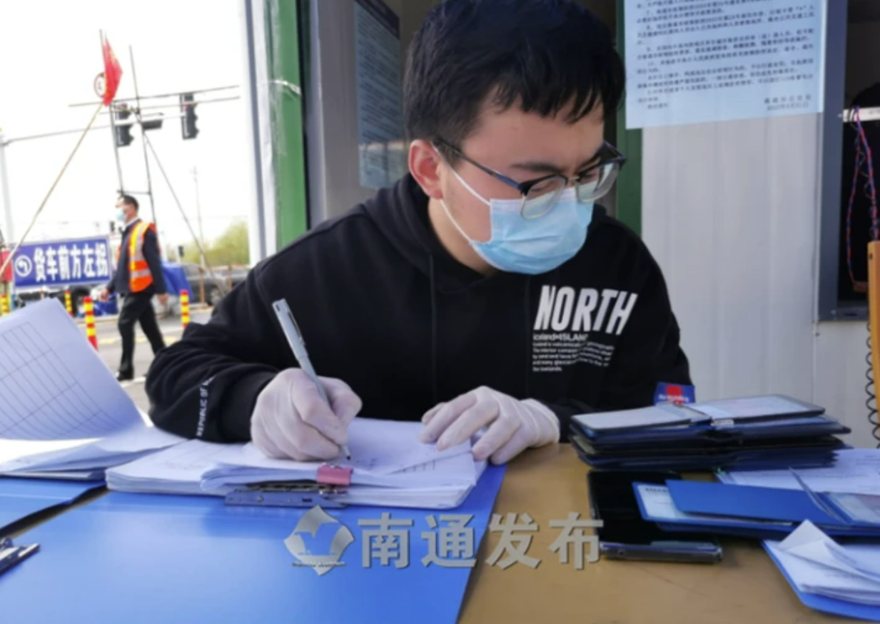 “我们每班安排两名人员在海启高速栟茶出口执勤,向到河口送货的货车司机送上入场须知,告诉他们送货到中天科技工业园的停车点就在北边的货场路上,用手机扫一扫入场须知上的二维码,上传‘六查’资料。”河口镇副镇长、货车服务点点位长周磊告诉记者:“审核员在平台上与进货单位提前提供的货车信息进行比对,无误后打印传给中天科技集团的登记员,看到货车驶入服务点,执勤人员拿起话筒通知司机开车接受张贴封条、消杀。”
