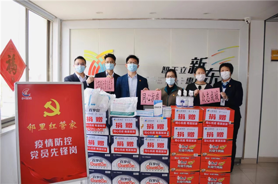 早在3月31日,崇川支行下辖的桃坞支行门口成为临时采样点,桃坞支行就在支行门口设立了服务台,加入到疫情防控的队伍,与医护人员、社区工作者们并肩作战。了解到社区人员和防疫物资紧缺的困难后,崇川支行第一时间联系供货商和授信客户,千方百计为社区采购医用手套、防护服和口罩。4月6日一大早,崇川支行的志愿者们就将防疫物资到了社区门口。“昨天才和你们联系,今天你们就送来了!谢谢!……”新东社区书记感谢道。
