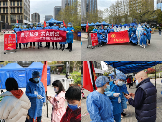 最美人间四月天,本是万物复苏、生机勃勃的季节,南通这座城市却在猝不及防的疫情下按下了暂停键。疫情就是命令,防控就是责任。在抗击疫情战场上,江苏银行南通分行党委响应市委市政府号召,组织党团员建立疫情防控志愿者队伍,积极投身防疫志愿服务,以实际行动践行初心使命。4月5日至6日,分行二十多名志愿者主动请缨,放弃休息日,分赴社区开展志愿服务活动。他们穿上防护服、戴上口罩、头套,按照社区统一安排,在核酸检测现场开展秩序维护、查验两码、扫码登记、体温测量,解答居民疑问,安抚居民情绪,引导社区居民们安全快速的完成检测任务。江苏银行志愿者认真负责的工作受到了社区和居民的充分肯定,展现了江苏银行良好社会形象。