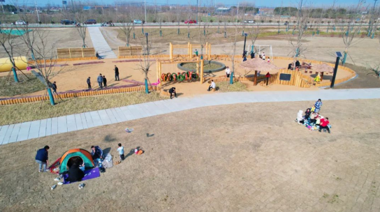 以“绿”为笔,绘就和谐宜居图。水也清了,岸也绿了,人就来了。成为让居民能有个看江景、吹江风的好地方,龙游湾沿江生态景观带工程启动了。远远望去,龙游湾如同被如皋长江大桥和长青沙大桥守护的一颗明珠,座座大桥如长虹卧江,触目即绿、移步即景,一段美丽的长江岸线渐渐“浮出水面”。景观带包含了观江平台、休闲驿站、江滩石溪、湿地花海、特色空间等,目标打造一个集休闲、娱乐、观光等多功能于一体的滨江生态景观带。目前,景观带一期已基本完工,不少的居民早早地就来打卡了。“周末带着孩子老人来这里吹吹江风、看看美景,孩子喜欢、老人也放松,这座家门口的公园真是太好了!”一片欢声笑语中,长江人的幸福画卷也徐徐铺展开来。