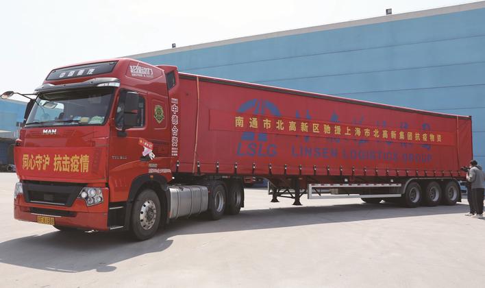 9日,“市北同心·跨江守沪”抗疫物资捐赠仪式在南通林森物流集团举行,由南通市北高新区捐赠的1000份物资发往上海市北高新集团,传递来自南通市北的温暖,注入抗击疫情的信心。 记者 许丛军摄
