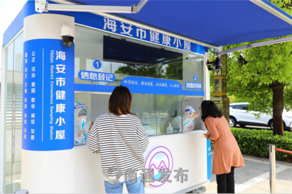 “从排队、查码登记到现场采样,整个过程只用了两分钟,散散步就把核酸做了,真方便。”5月9日上午,海安市民王先生在海安街道平桥村东广场采样点做核酸时,新上线的“健康小屋”让他眼前一亮,便捷高效的核酸采样体验让他赞不绝口。