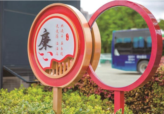 走进清风驿站,滚动播放的廉政教育宣传片、顶部悬挂的“廉”字标语、窗户粘贴的“廉”式窗花等,均以最直观的方式弘扬中华优秀传统文化、廉洁文化。穿梭于廉洁文化长廊,候车廊北侧10个不同形式的“廉”字力透纸背,寓意为青(清)廉长(常)柱(驻);南侧廊柱上的10幅廉洁名言警句,让穿行于长廊的乘客朋友在潜移默化中接受廉洁教育。停车场洗车池旁,张贴的“廉洁自律需勤‘洗’”等紧密联系生产工作的宣传标语,时刻提醒公交干部职工在思想作风上看清自己、纠正自己。踏上45路江海清风号,车身、车厢、挡板、拉手等位置装饰了与廉洁文化有关的标语、故事,使公交车成为“行走”的廉政宣传栏。行驶至城山路,公交站台上的廉洁画与莲花砖串联成景,让市民在欣赏景观的同时接受廉洁文化熏陶。