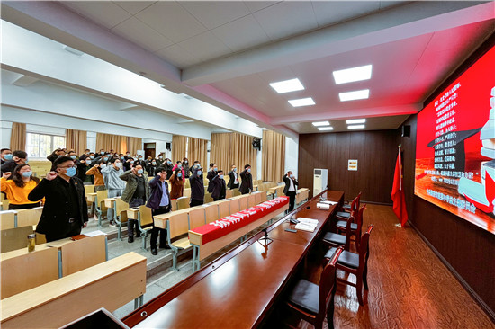随后,全体党员在崔益根书记的带领下面向国旗,举起右臂、紧握右拳庄严宣誓:忠诚党的教育事业,贯彻国家教育方针,履行教师神圣职责。……为全体学生美好未来,奉献全部智慧和力量!铮铮誓言久久回响,表达了全体党员教师永葆清正廉洁本色的坚定信念。