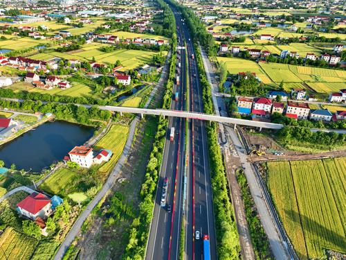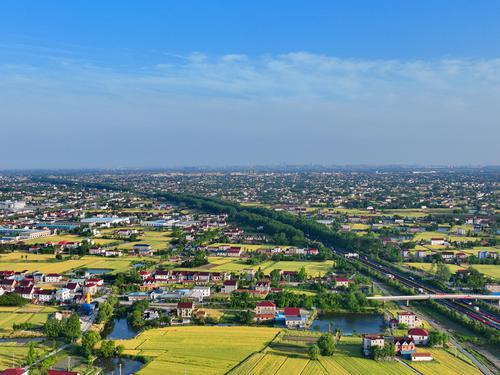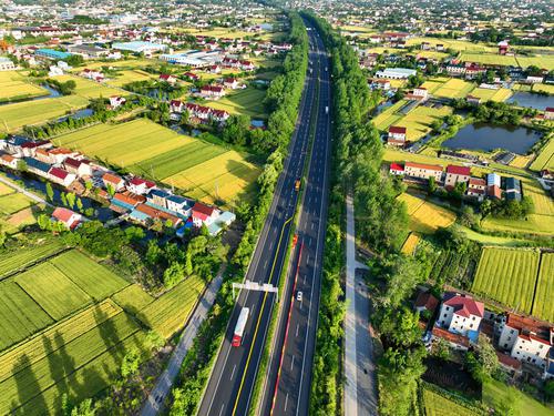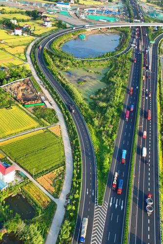 2022年5月13日,无人机航拍G15沈海高速美丽景色。在南通到如皋的高速公路路段两侧,绿树、麦田、民居等为这一路段增添了多种颜色,俯瞰高速公路,宛如一道靓丽的风景线。