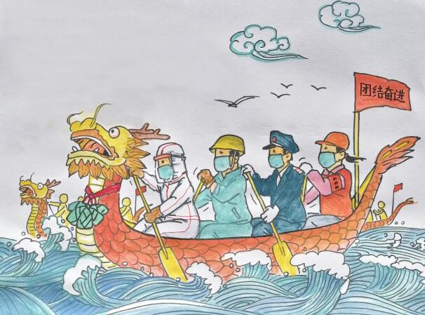 沿袭“一习俗”,感悟伟大抗疫精神。“玉粽袭香千舸竞,艾叶黄酒可驱邪。”插艾叶,挂菖蒲,喝雄黄酒,这些民间质朴的习俗也传承了千年。端午节,除了纪念屈原,也是一个祈福的节日,饱含着中国人期盼身体安康的美好愿望。特别是古时医疗条件落后,夏季容易流行“疫病”,于是先人们想出各种法子,“碧艾香蒲处处忙”。面对突如其来的新冠肺炎疫情,在“抗疫”的艰难时刻,我们守望相助,危难之际展示了众志成城的伟大抗疫精神。将人民的生命安全和身体健康放在第一位,筑牢疫情防控的铜墙铁壁,广大医护工作者白衣执甲,逆行而上;志愿者守好交通卡口,做好保障……汇聚起强大的精神合力。