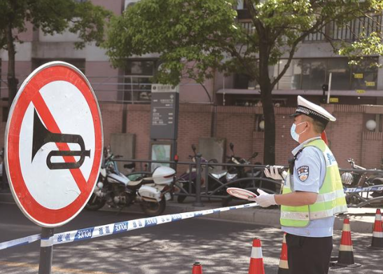 南通中学考点外,现场执勤的交警在北濠桥环城北路路口和市中医院西门北侧拉起警戒线、开启“禁鸣模式”。听力考试期间,所有机动车和非机动车禁止进入考点区域。周边小学提前放学,上午11点后就已清校,将干扰因素减到最低。