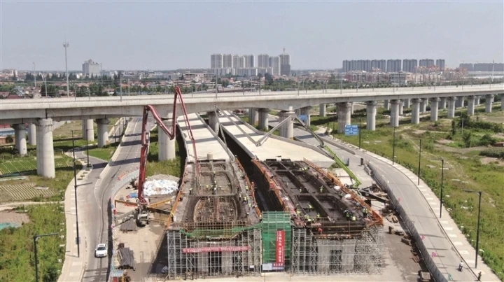 昨日,西站大道(二期)工程首件箱梁混凝土成功浇筑。该工程位于通州区平潮镇,是市区快速路网的重要组成部分,共分为五个标段,目前各标段正全力以赴推进相关工作。截至目前,全线已完成灌注桩1344根,占总量的84.8%、承台201座,占总量的65.5%、墩柱165座,占总量的51.6%。 记者 尤 炼摄