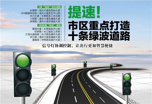 信号灯协调控制,让出行更加智慧便捷。记者从6月21日南通市公安局交警支队召开的南通市区道路交通信号优化意见征询暨新闻通气会上获悉,作为今年民生实事项目,南通市区将重点新建、优化10条“绿波”路段。目前,长泰路“绿波”优化已初见成效,通行效率明显提升。