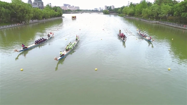 26日下午,市龙舟协会2022年第二轮龙舟联赛活动举行,来自我市的14支龙舟队伍和2支来自苏州的龙舟队伍,共同在濠河之上劈波斩浪,争相竞逐。 记者 李波摄
