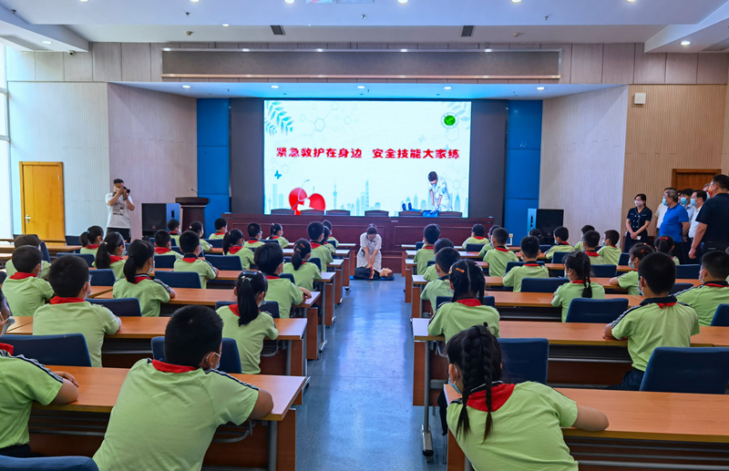 “在安全馆内,学生被各类新奇的东西吸引,注意力会更加集中,学习的效果很好。我们虽然是新建的学校,但已经在安全馆内开展了多次活动,学生们学习了应急救护培训的知识,效果很好。”东洲小学长江路校区副校长于育强认为,一些低年级的小孩子尚不能完全理解这些知识,但可以通过阵地体验,在潜移默化中形成应急救护的意识。
