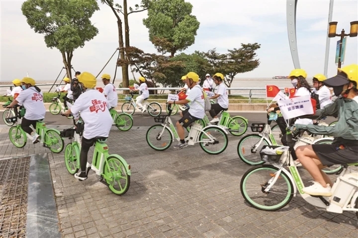 昨日,崇川狼山镇街道“喜迎二十大——骑行生态滨江,追寻初心再出发”主题党日活动举行。街道党员职工、骑行爱好者集结在滨江公园风帆广场,共同见证城市建设蓬勃发展,感受滨江生态美好。 记者 许丛军摄