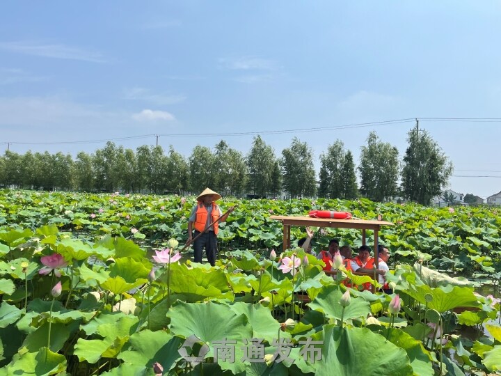 一大早,王德兰便与几位友人从邻市海安相约来此赏荷。置身于一望无垠的荷塘之中,撑一艘小船、坐上轨道小火车,体验一把穿梭荷塘的乐趣。“这个村已经成了我们每年必打卡的旅游景点之一。”